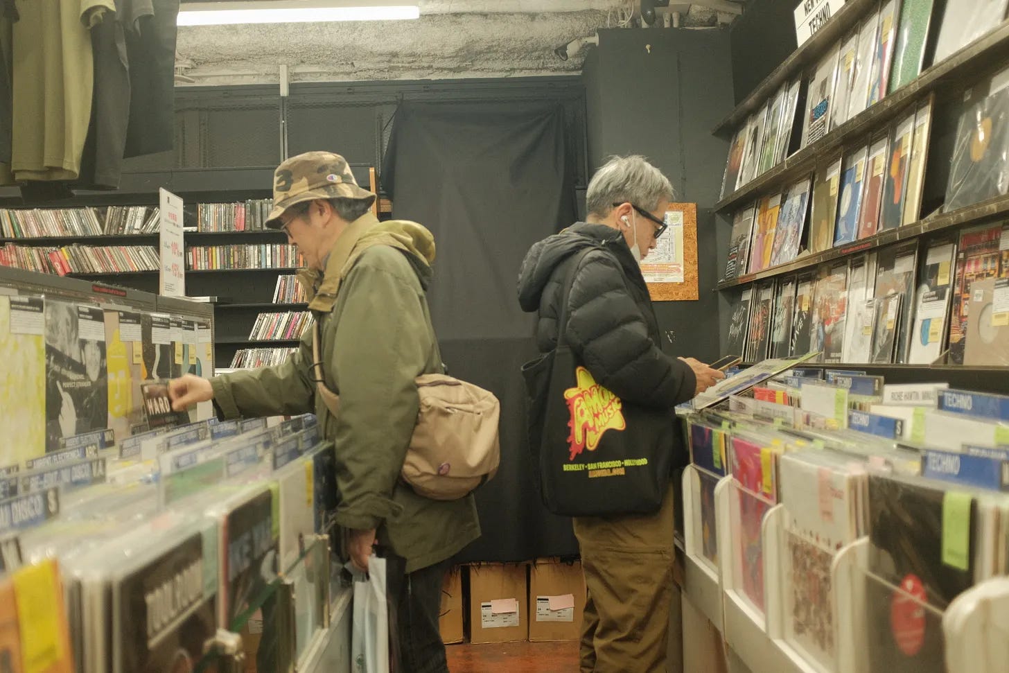 One thing that fascinated me was the role that Japan’s record stores play in everyday urban life. The stores are densely embedded into the cities; up stairwells, in basements, inside big electronics stores, in department complexes. Shopping for records there is a routinised hobby. In Amsterdam, or even here in the UK, record stores often feel more like a destination, or part of a street’s siloed independent-retail ecology (alongside cafés, barbers, clothes). Trips to European stores have often felt more occasional - a weekend browse, a leisure outing, a lifestyle choice.