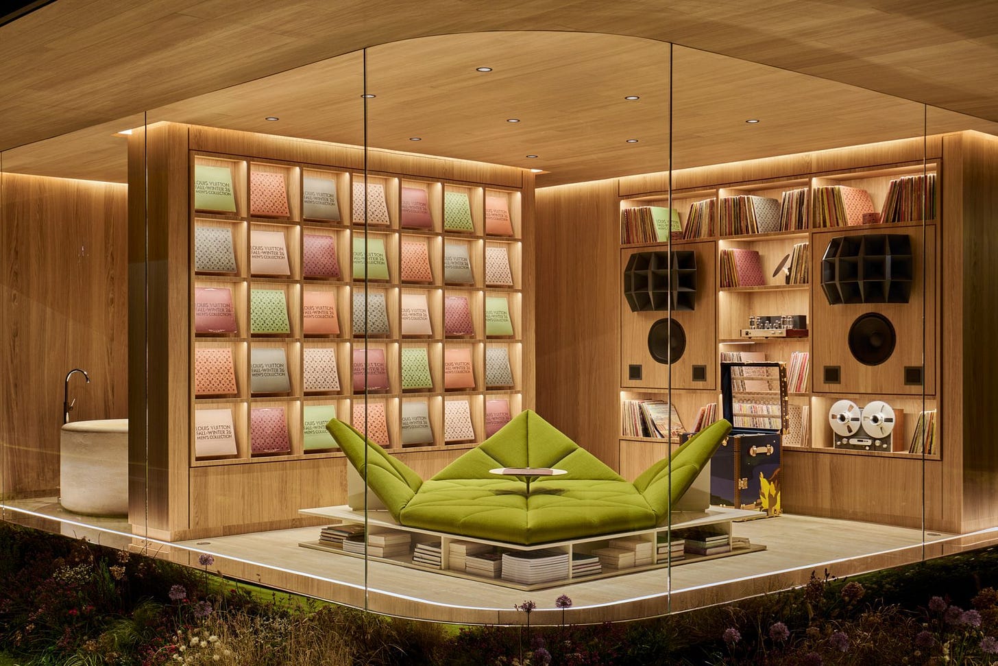 For Louis Vuitton's Autumn Winter 2026 menswear show during Paris Fashion Week, the brand's men's creative director Pharrell Williams created a minimalist timber house featuring a dedicated vinyl listening room. As reported by Living ETC, the luxurious interior included ‘slick’ sound equipment, impressive vinyl record storage and Louis Vuitton-branded records, making it ‘the dream of audiophiles everywhere’. The house concept, developed with architectural firm Not A Hotel, was designed to embody the fashion collections idea of ‘timelessness’ in architectural form: ‘a vision of future living built on function, savoir fair, and human need’.